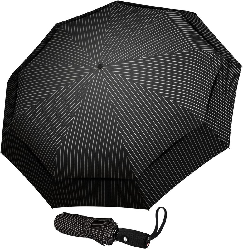 Grote Afbeelding :  Einde reclame Drievoudige paraplu met gouden metalen ribben en automatische vouw